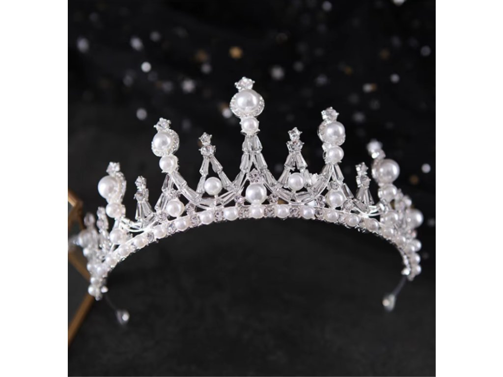 Elegantní perlová tiára s čirými krystaly ve stříbrné barvě