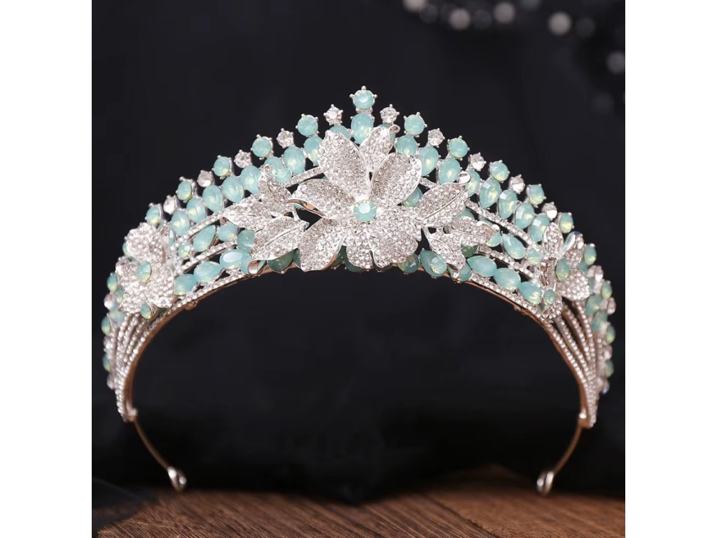 Tato slavnostní korunka je ideální volbou pro nevěsty, družičky, plesy, slavnostní akce i focení. Pokud hledáte stříbrnou tiáru se zeleným opálem, která vyniká květinovým designem a dominantním středovým prvkem, tento model je perfektní volbou.