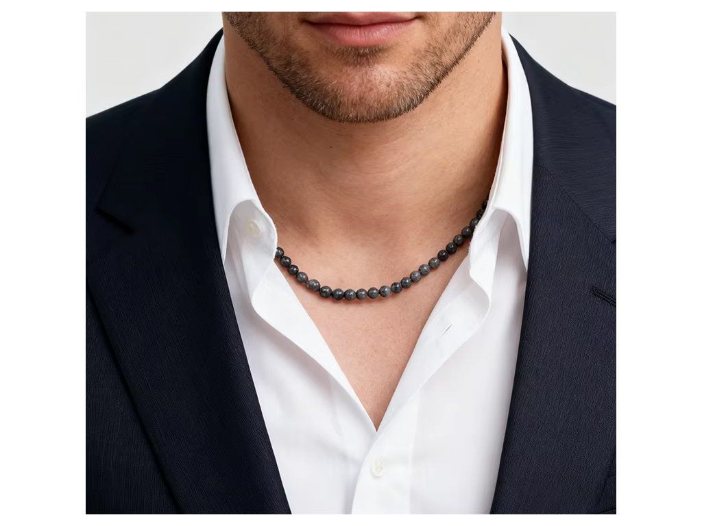 Tento pánský náhrdelník z přírodních kamenů je vhodný pro každodenní nošení i jako stylový doplněk pro společenské příležitosti.