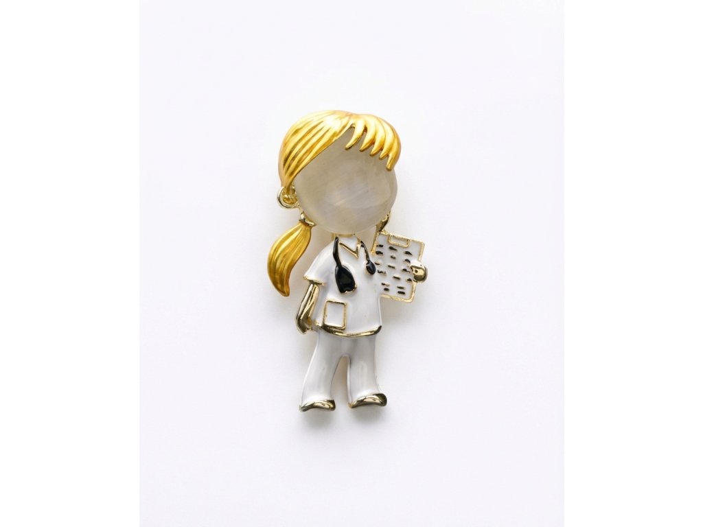 Tato brož s motivem lékařky zaujme originálním tematickým zpracováním, které elegantně odkazuje na zdravotnické povolání. Díky decentní velikosti a vyváženému designu působí vkusně a je vhodná pro běžné denní nošení i slavnostní příležitosti. Krásně doplní sako, halenu, šaty i pracovní oděv a dodá outfitu osobitý detail.