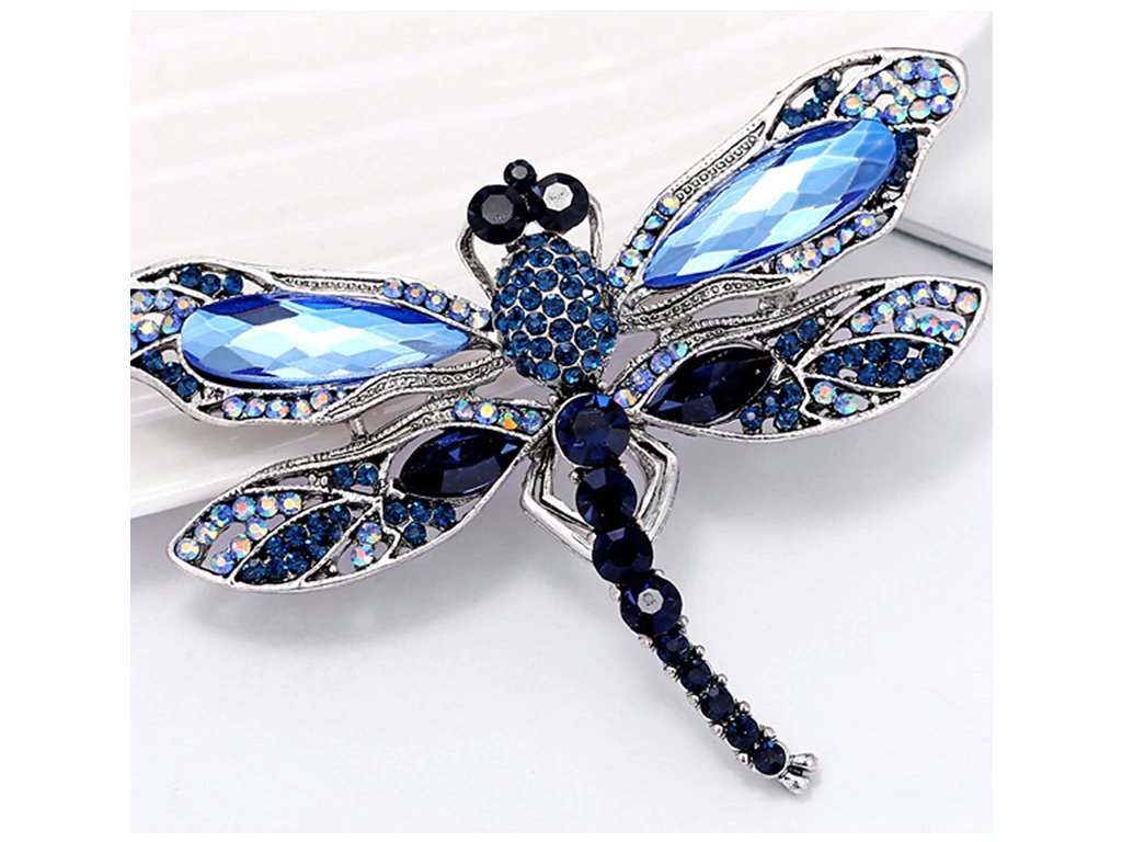 Brož s kamínky Vážka – modrá je elegantním a zároveň hravým doplňkem inspirovaným lehkostí přírody. Jemně tvarovaná vážka je zdobená modrými kamínky, které zachycují světlo a dodávají šperku magický třpyt. Symbolizuje svobodu, proměnu a klid – ideální pro ženu, která miluje krásu v detailech. Skvěle se hodí na sako, šátek nebo kabát, kde působí decentně a přitom výrazně.
