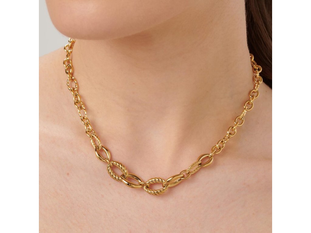 Vyrobený z chirurgické oceli 316L s odolnou povrchovou úpravou zlatého PVD, která dodává šperku trvalý lesk a výjimečný vzhled. Délka 42 cm zajišťuje ideální usazení kolem krku a ocelová karabina poskytuje bezpečné zapínání. Tento náhrdelník je dokonale univerzální doplněk – zvýrazní denní outfit i večerní eleganci.