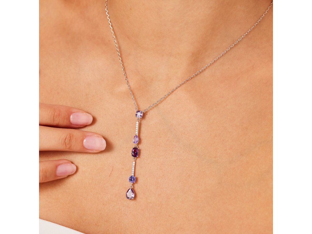 Náhrdelník Brosway FANCY MAGIC PURPLE s podélným přívěskem - Stříbro 925