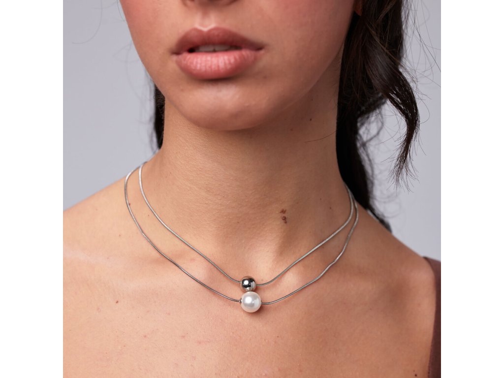 Brosway Perfect je slušivý dvouřadý náhrdelník, který spojuje moderní design a nadčasovou eleganci. Je vyroben z kvalitní chirurgické oceli 316L, známé pro svou odolnost proti poškrábání, dlouhou životnost a hypoalergenní vlastnosti. Jemný řetízek typu hádek nese středovou ocelovou kuličku a kuličku v imitaci bílé perly, které dodávají šperku ženský šarm a jemnost.