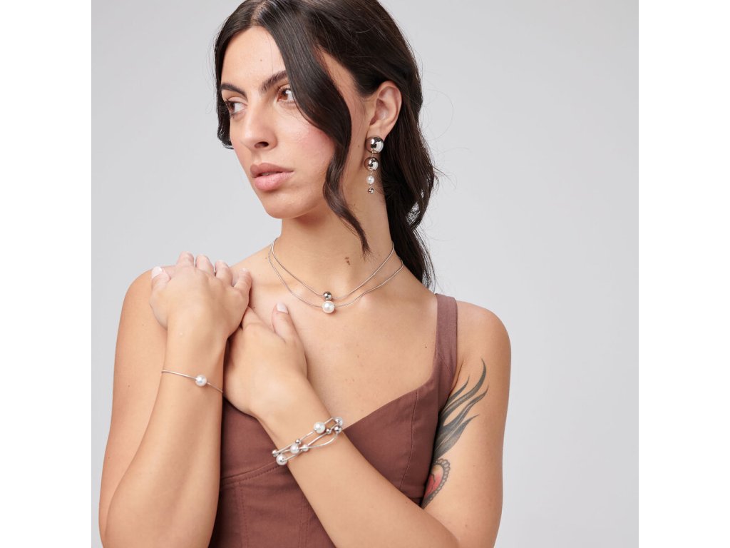 Kulička z oceli a imitace bílé perly – nenápadná elegance, která nepřehluší outfit.