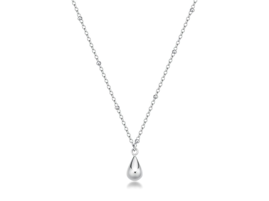Dominantou šperku je půvabný přívěsek ve tvaru kapky, který působí čistě, jemně a nadčasově. Řetízek je navíc doplněn drobnými kovovými ozdobnými kuličkami, které přidávají šperku moderní šmrnc. Náhrdelník dokonale doplní každý outfit – od ležérního po elegantní – a dodá mu nádech sofistikovanosti. Díky své lehkosti a příjemnému zpracování je velmi pohodlný na celodenní nošení.