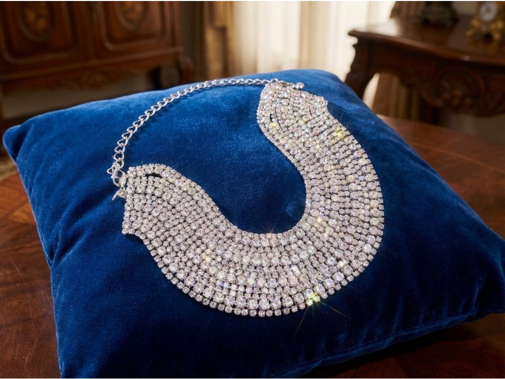 Tento výjimečný choker náhrdelník tvoří 12 tenkých vrstev, z nichž každá je zdobena precizně broušenými krystaly, které se nádherně lesknou při každém pohybu. Je navržen tak, aby působil výrazně, ale zároveň zůstal elegantní a dokonale doplnil slavnostní či večerní outfit. Dostupný je ve dvou barevných variantách, takže si můžete zvolit styl, který nejlépe vystihne vaši osobnost a vkus.