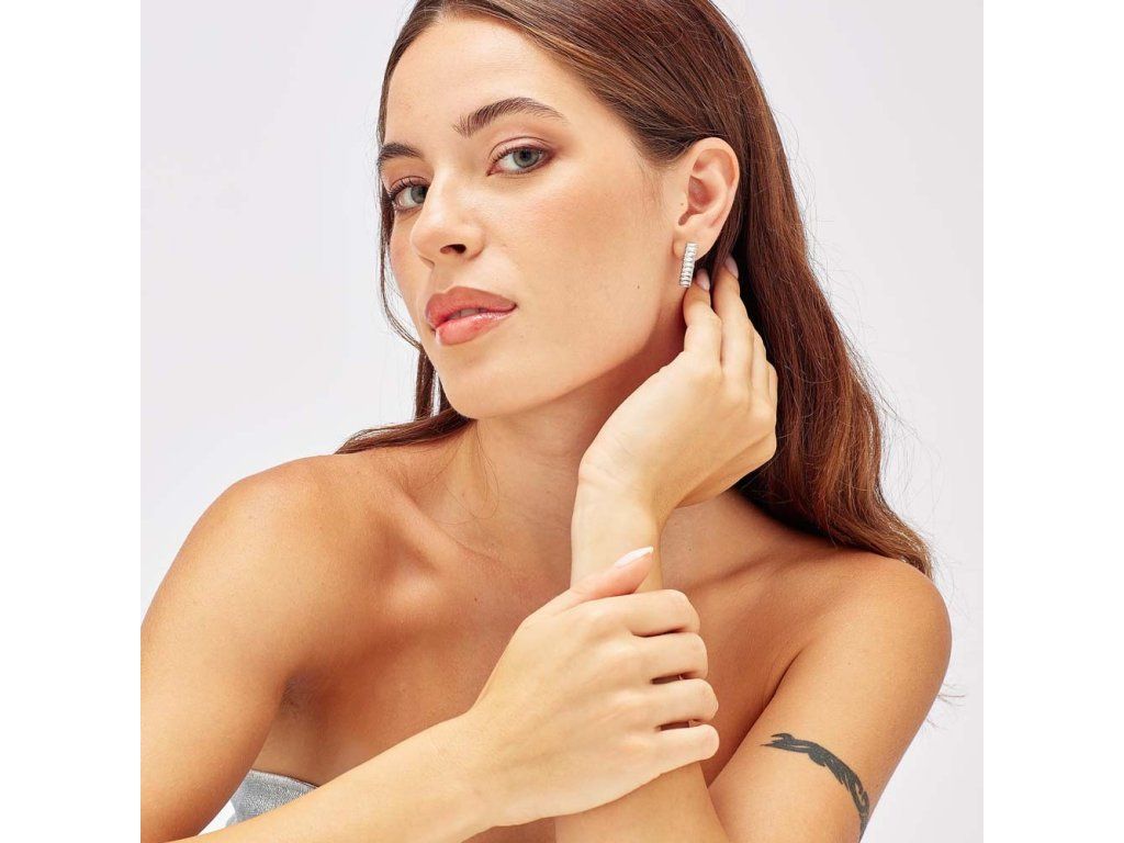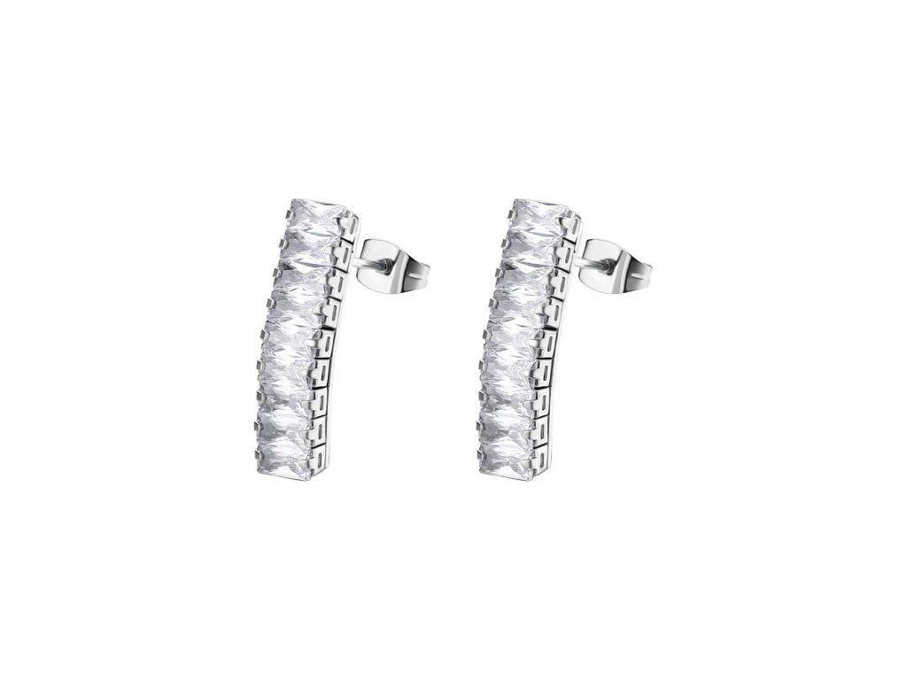 Každá náušnice je dekorovaná čirými kubickými zirkony, jež dokonale odrážejí světlo a dodávají šperku půvab i sofistikovaný vzhled. Díky zapínání na ocelovou puzetu jsou pohodlné a bezpečné pro každodenní nošení.