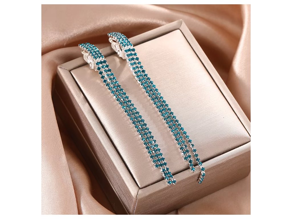 Elegantní dlouhé klipsové náušnice s krystaly – stříbrné, zelené krystaly