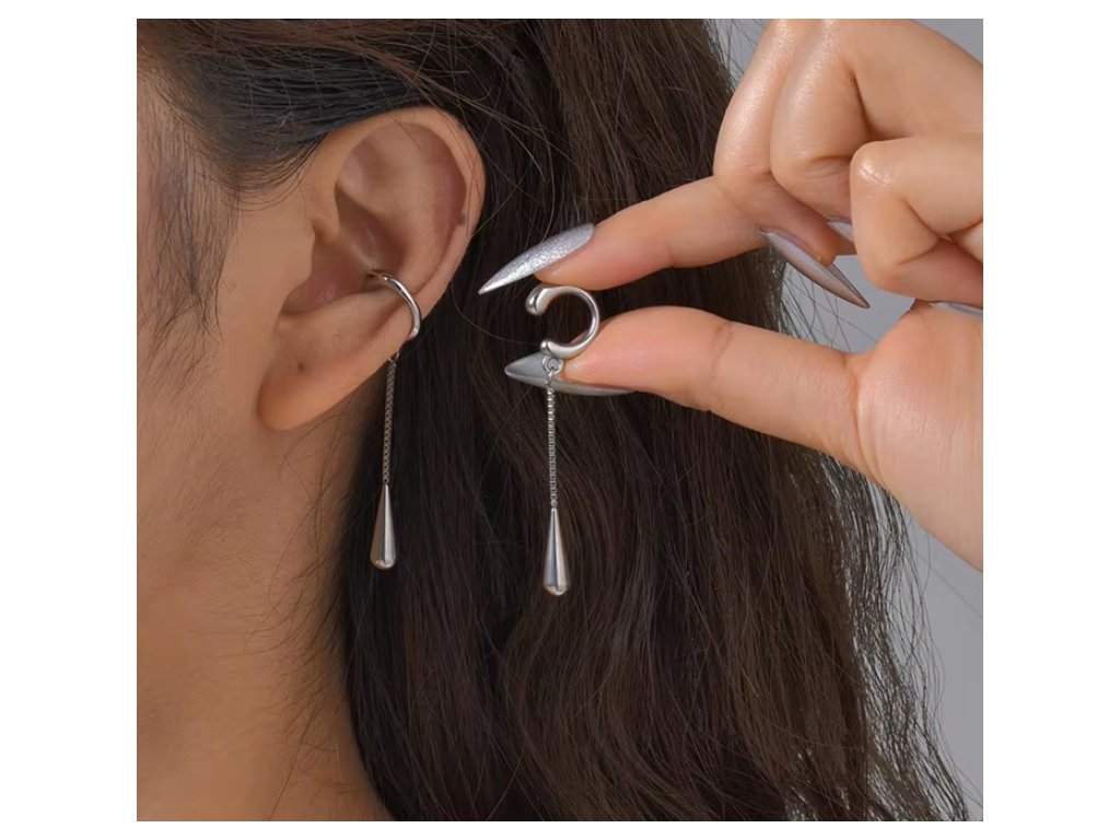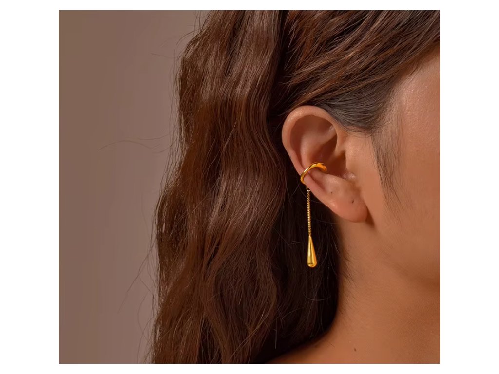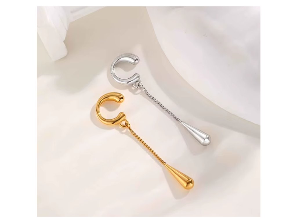 Tato originální náušnice klips na jedno ucho je vyrobena z kvalitní nerezové oceli a zaujme minimalistickým, ale výrazným designem. Jemný řetízkový přívěsek dodává náušnici elegantní pohyb, zatímco kapka na jeho konci vytváří zajímavý detail. Náušnice je dostupná ve dvou barevných variantách a je ideální volbou pro moderní styling i výrazný módní akcent.