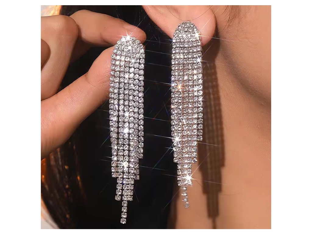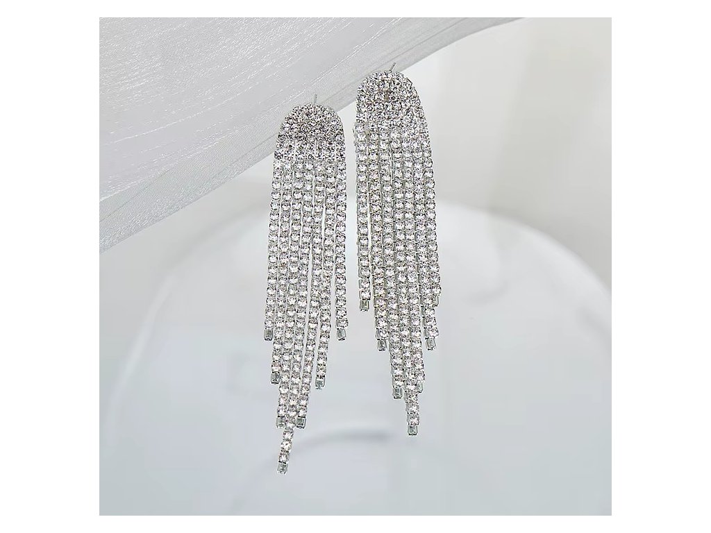 Dlouhé krystalové náušnice se střapci - postříbřené