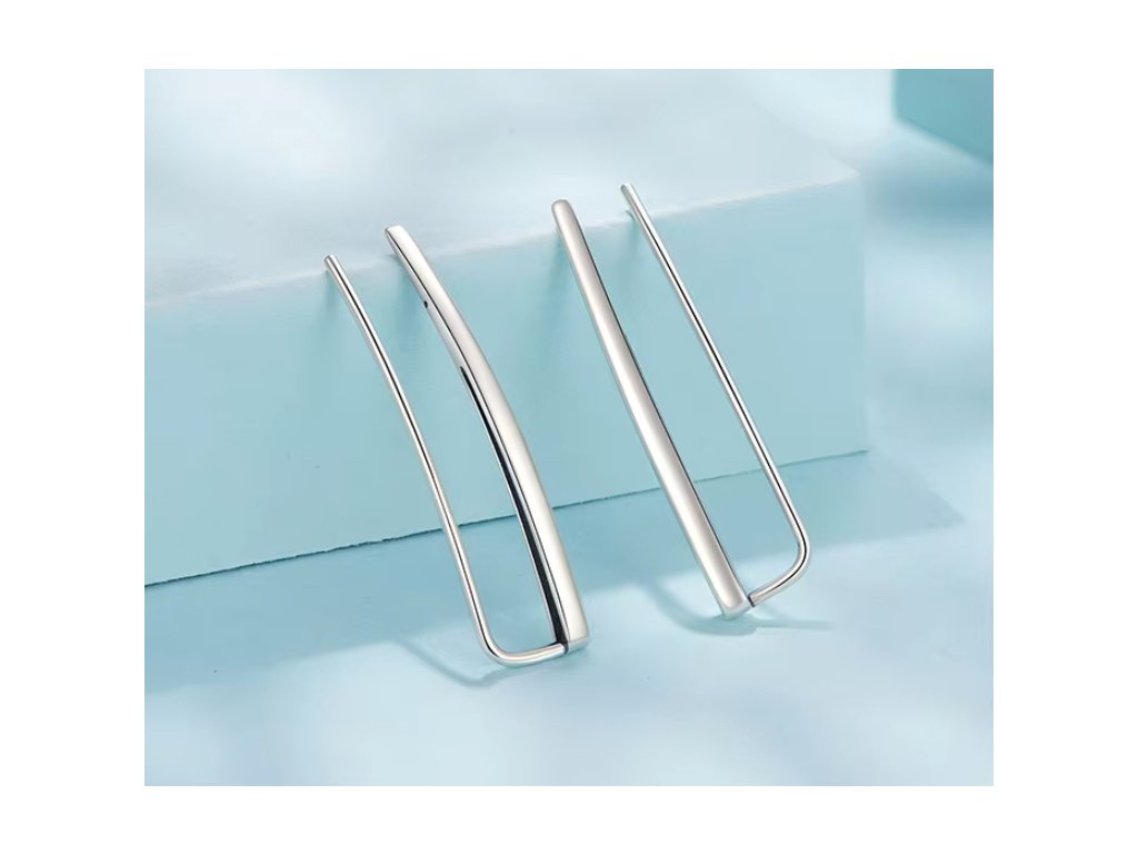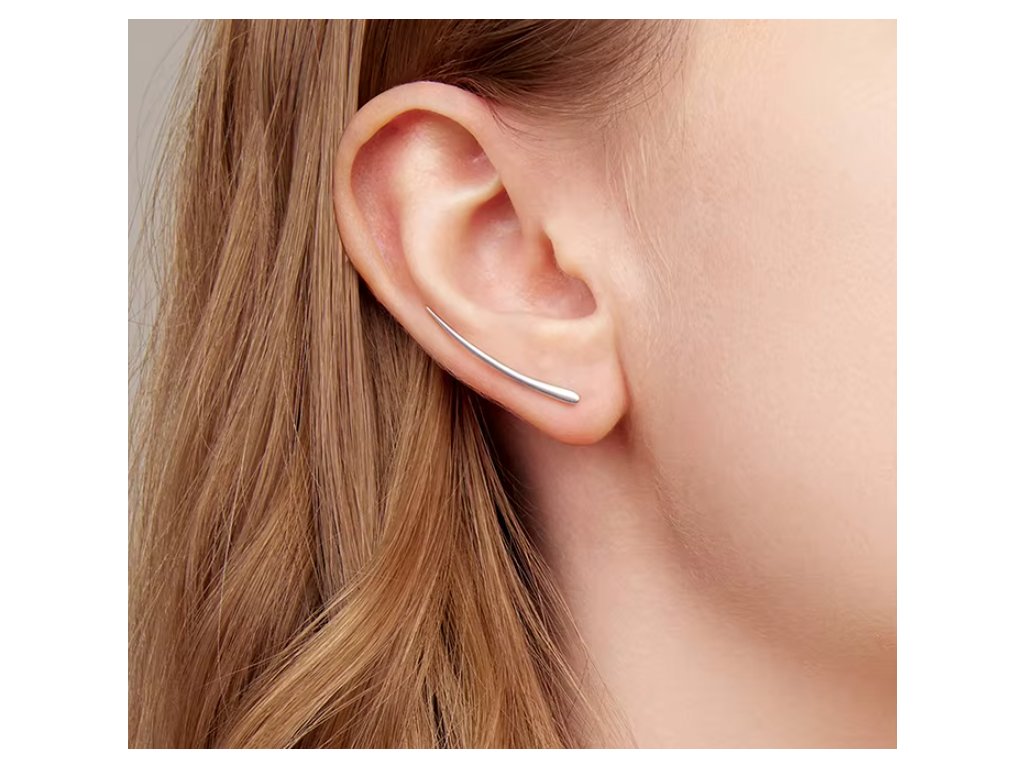 Tyto minimalistické postříbřené náušnice vynikají čistým a nadčasovým designem. Náušnice se snadno protáhnou ušní dírkou a jejich délka kopíruje tvar lalůčku po celé jeho délce. Protější strana se jemně přimáčkne k uchu, díky čemuž náušnice bezpečně drží bez nutnosti klasického zapínání.