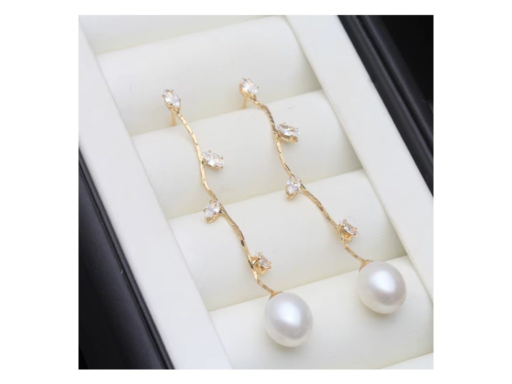 Tyto půvabné pozlacené náušnice v dlouhém provedení zaujmou jemným motivem krystalových lístků, které vytvářejí lehký a elegantní vzhled. Na jejich konci je zavěšena oválná sladkovodní perla, jež dodává šperku nadčasovou eleganci a luxusní nádech. Náušnice jsou ideální volbou pro slavnostní příležitosti, večerní outfity i jako výrazný doplněk k elegantnímu stylu.