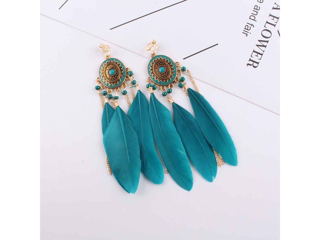 Dámské náušnice klipsy BOHEMIA S PÍRKY - zlatá/modrá