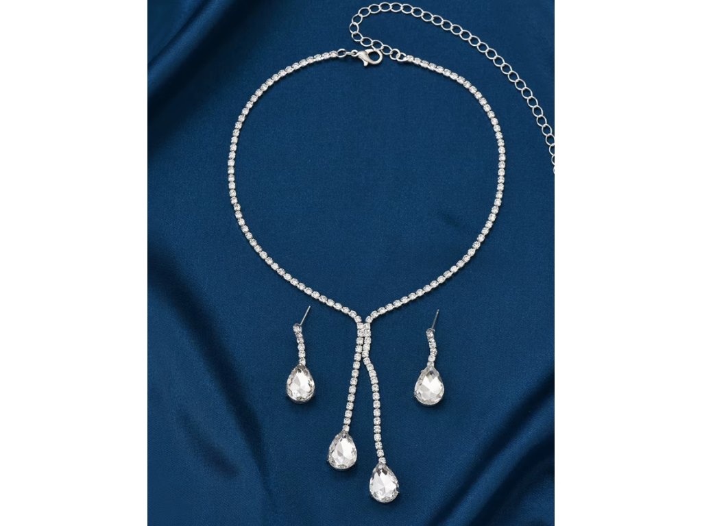 Postříbřená souprava náhrdelníku a náušnic s kapkovitými krystaly
