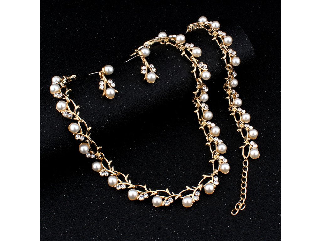 Tato exkluzivní pozlacená šperková souprava představuje dokonalou kombinaci elegance, kvality a univerzálního stylu. Souprava se skládá z náhrdelníku, náušnic a náramku a je vyrobena z vysoce kvalitních syntetických perel, které jsou doplněny jemnými krystaly pro decentní lesk.