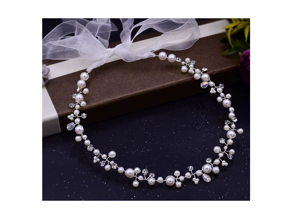 | Materiál: | Umělá perla, Bižuterní kov, Organza |