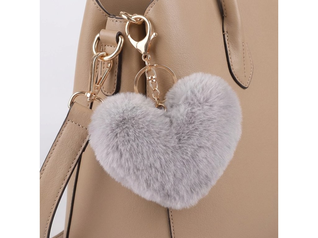 Hledáte doplněk, který je roztomilý a zároveň šik? Tato pompom klíčenka ve tvaru srdce je přesně tím pravým kouskem. Její povrch tvoří hustá a nadýchaná imitace králičí kožešiny, která si zachovává svůj tvar a objem. Světle šedý odstín dodává klíčence sofistikovaný nádech, díky čemuž se hodí i jako ozdoba na luxusnější kabelky nebo mobilní telefony.