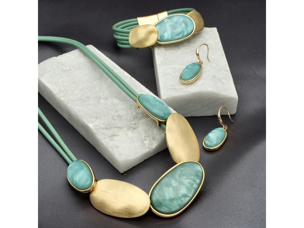 Vrstvený kožený náramek v modrozeleném tónu