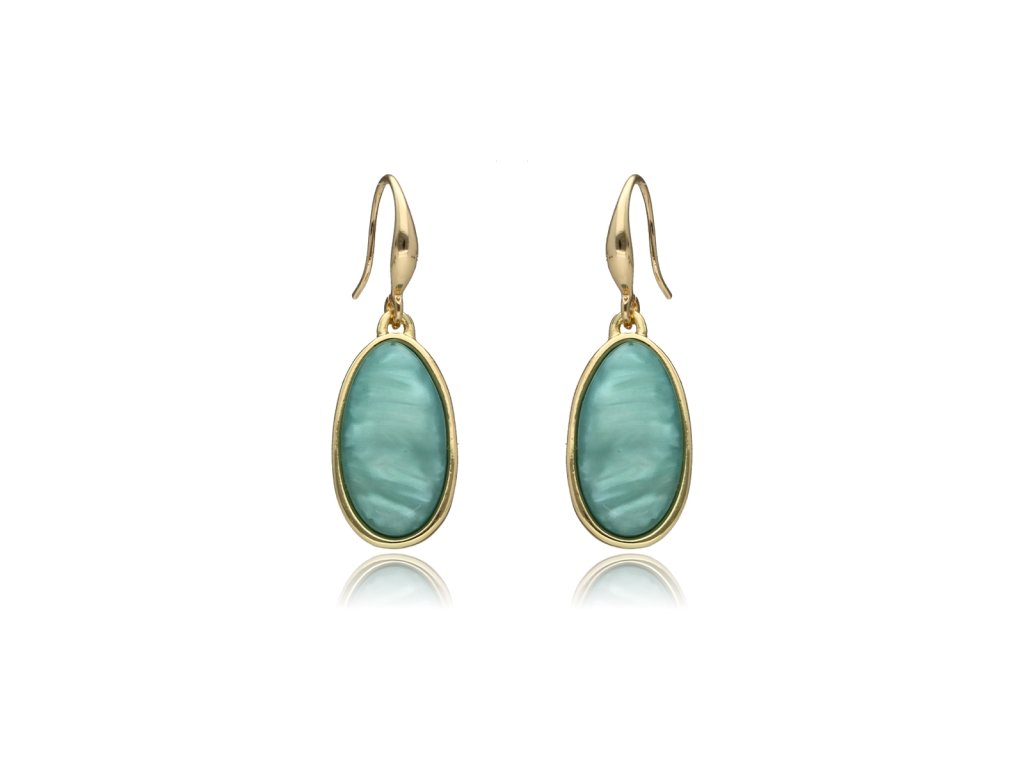 Tyto náušnice zaujmou protáhlým oválným tvarem a klidnou barevností, která působí svěže, žensky a velmi harmonicky. Pryskyřice s jemným efektem hloubky vytváří dojem lehkosti a pohybu, takže náušnice přirozeně zvýrazní obličej a dodají celému vzhledu elegantní akcent.
