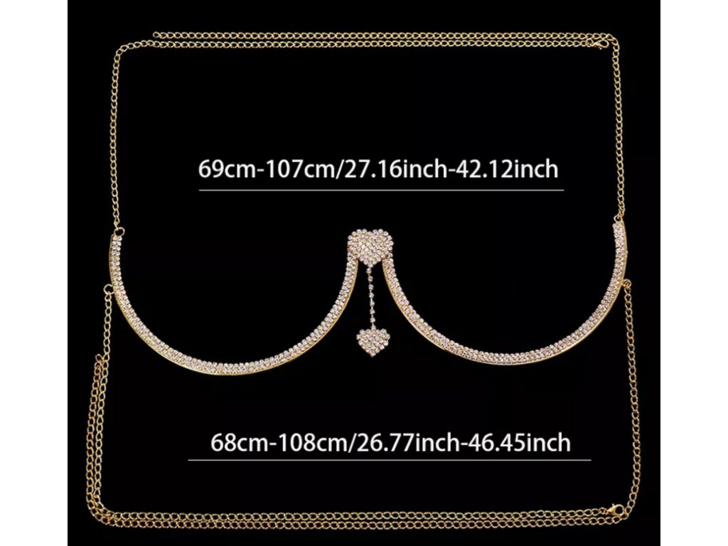 Sexy štrasový řetízek/ podprsenka na hruď Double Heart