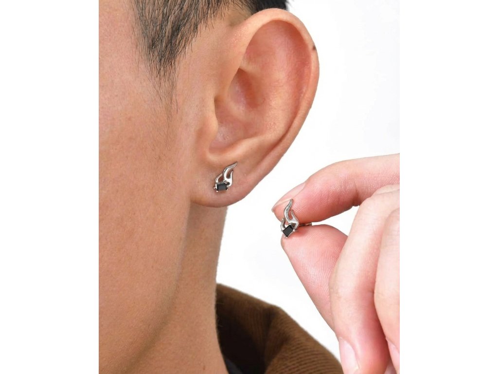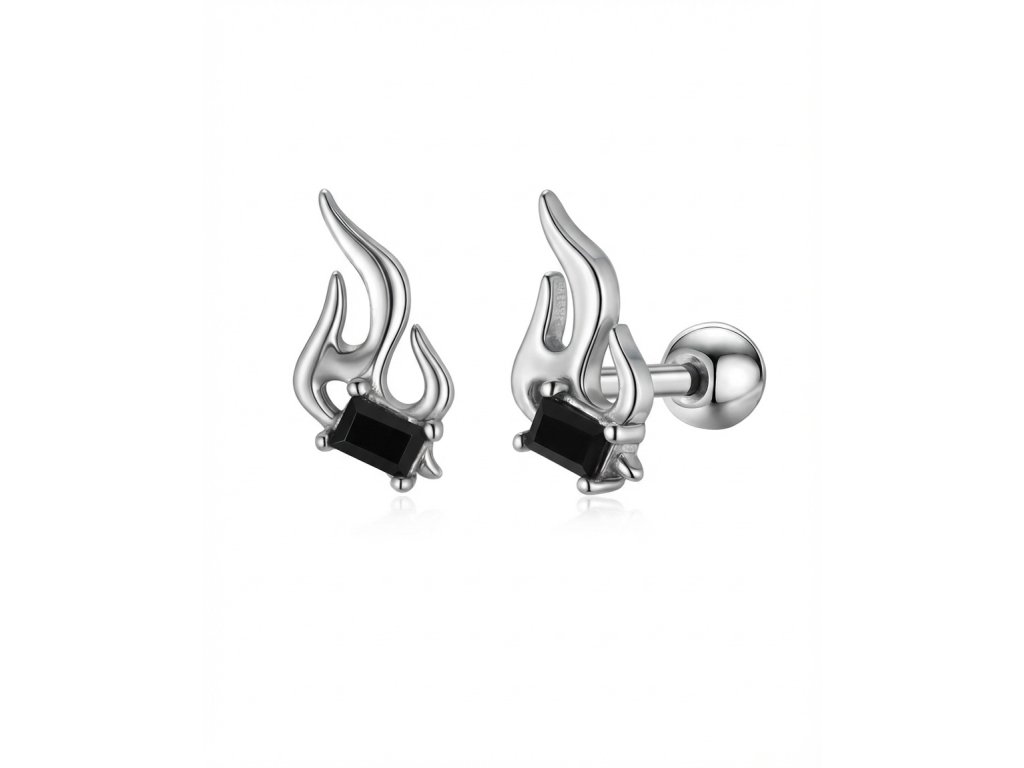 Tyto originální náušnice ve tvaru plamene zaujmou čistými liniemi a kontrastem stříbrného tónu s tmavým kamenem. Motiv ohně působí dynamicky a dodává šperku energický, lehce rebelský charakter. Díky kompaktním rozměrům jsou výrazné, ale stále pohodlné pro každodenní nošení.