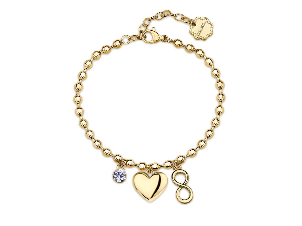 Náramek Brosway Chakra zlatý se srdcem, krystalem a symbolem nekonečna (PVD)