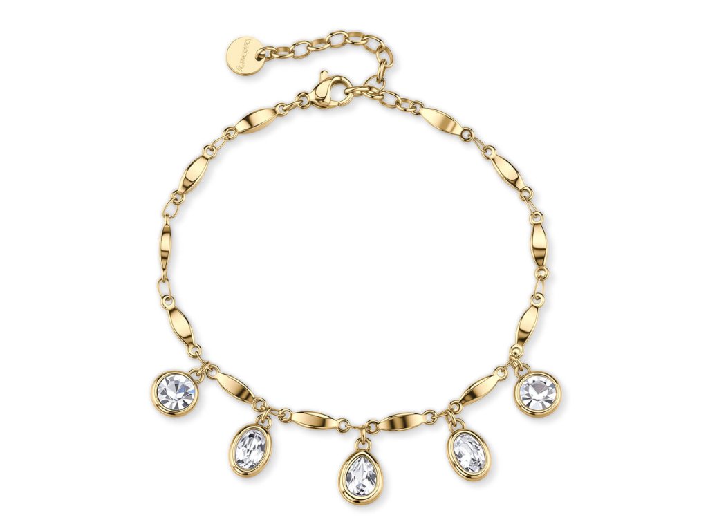 Náramek Brosway SYMPHONIA zlatý s kapkovými a oválnými krystaly (PVD)
