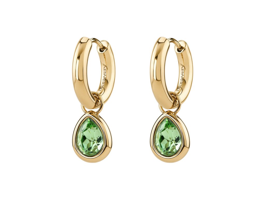Základem designu jsou nadčasové kruhy, ze kterých jemně splývají přívěsky ve tvaru kapky osazené zelenými broušenými krystaly. Ty dodávají šperku svěží barevný akcent a sofistikovaný třpyt, který krásně rozzáří tvář a podtrhne ženskou eleganci. Náušnice působí lehce, vzdušně a velmi vkusně.