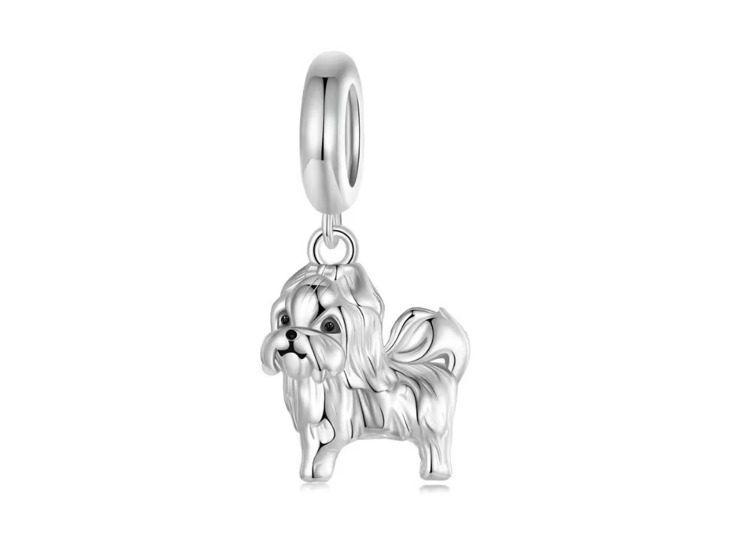 Tento přívěsek z kvalitního stříbra 925 zachycuje pejska s jemně propracovaným „chlupatým“ vzhledem, který mu dodává hravý a realistický charakter. Detailní provedení zvýrazňuje jednotlivé rysy a činí šperk výrazným, ale zároveň jemným doplňkem. Přívěsek je ideální volbou pro milovníky psů a krásně doplní řetízek i náramek jako osobní a stylový symbol.