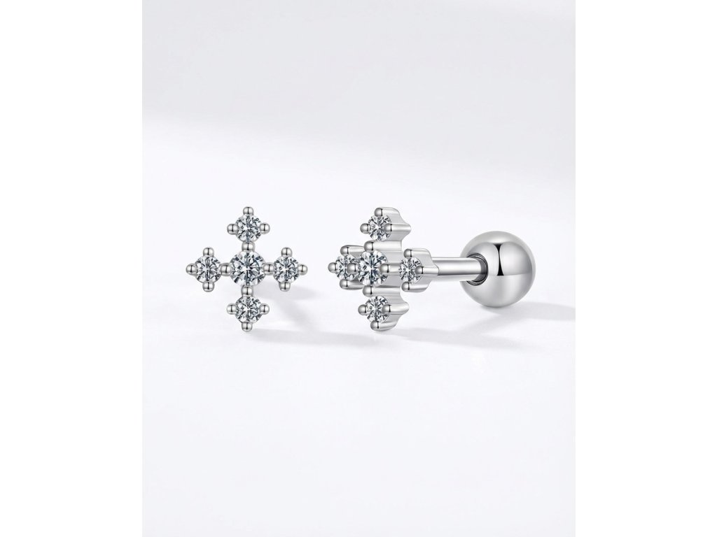 Elegantní náušnice kříž - Stříbro 925 s moissanitem