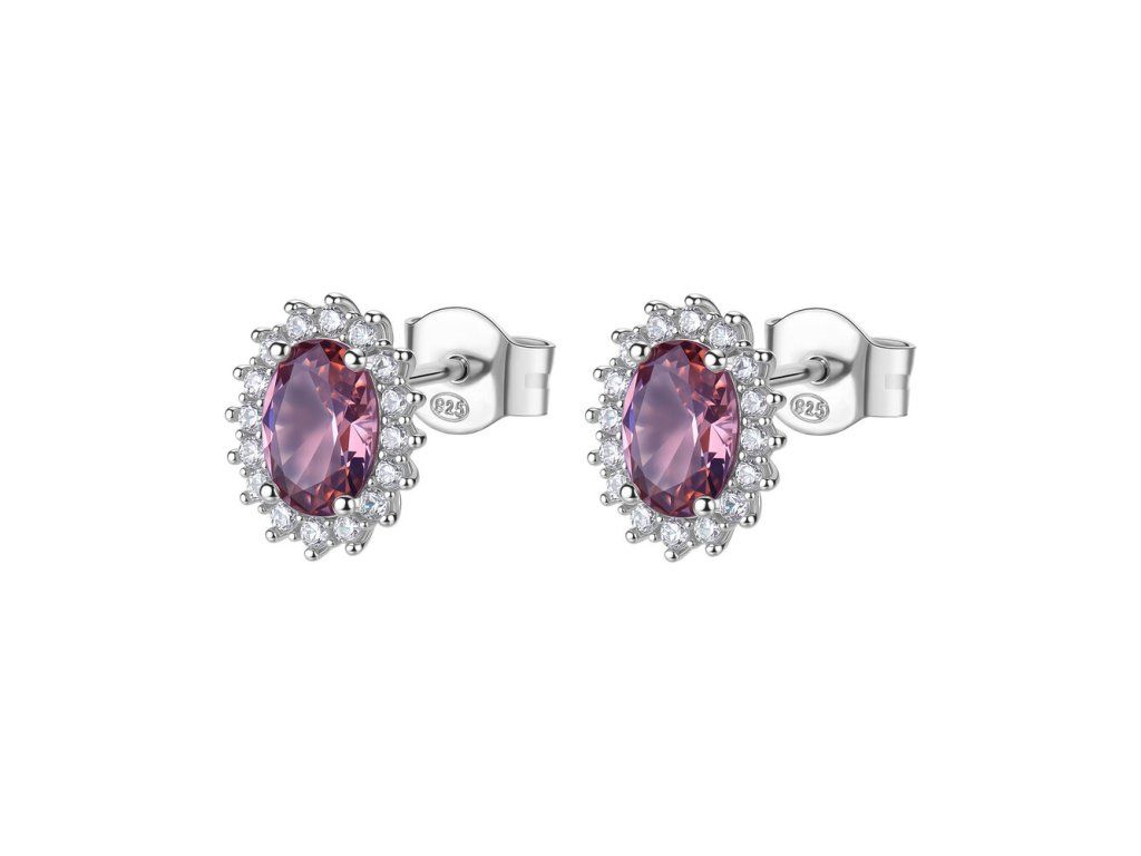 Dominantním prvkem náušnic je oválný vintage růžový kubický zirkon, který zaujme svým romantickým odstínem a krásným leskem. Tento výrazný kámen je obklopen drobnými čirými zirkony, které vytvářejí efekt luxusního třpytu a dodávají šperku elegantní rámování.