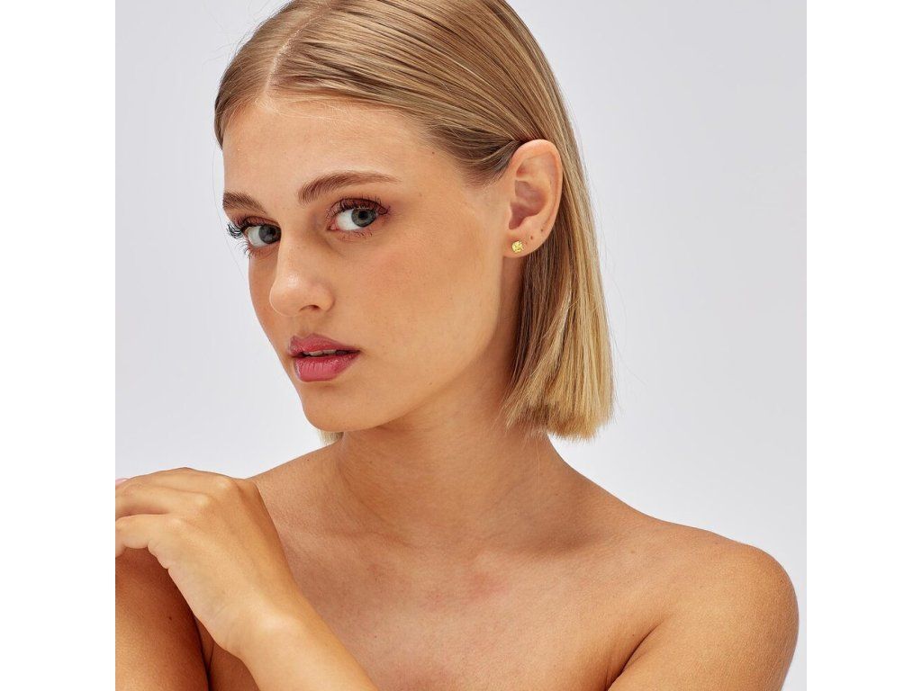Dominantním prvkem je precizně broušený žlutý kubický zirkon, jehož zářivý odstín symbolizuje energii, optimismus a radost. Jednoduché čtvercové osazení nechává kámen krásně vyniknout a dodává náušnici moderní a čistý vzhled.