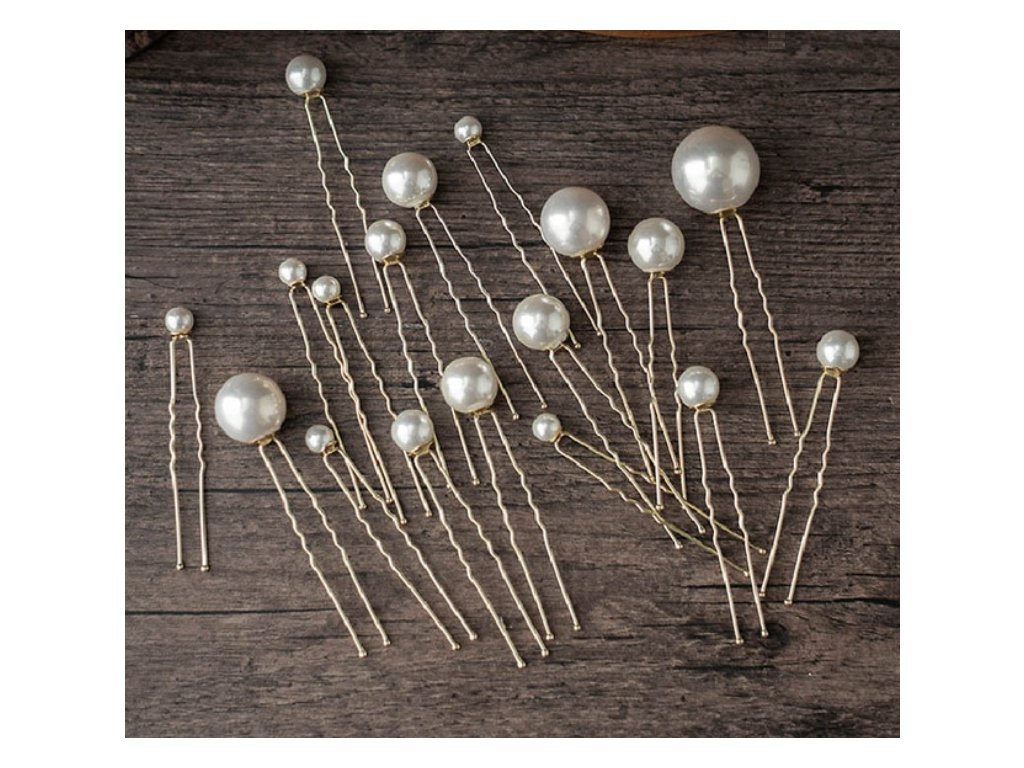 Svatební vlásenky PERLA 18 ks - zlatá/bílá